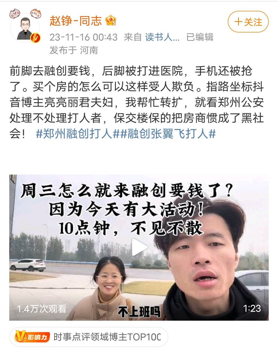 网红夫妇买了融创烂尾楼去维权,男方直接被打进医院,手机也被抢了,监控也关了,引发中国舆论关注。
