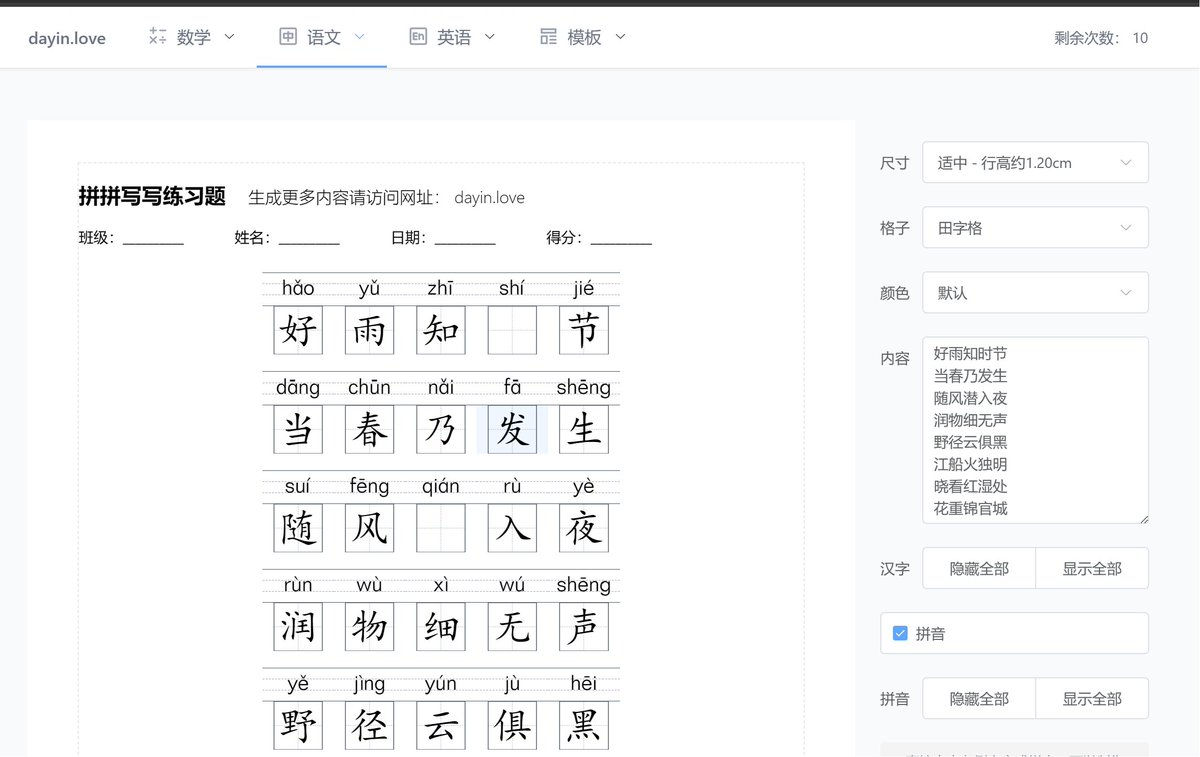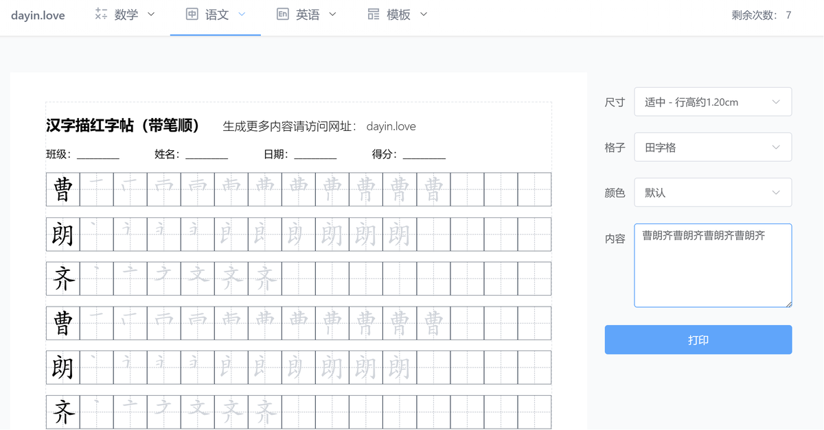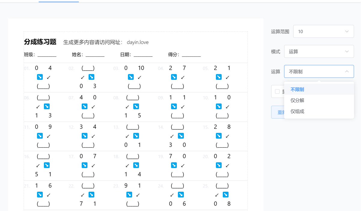 新产品上线!打印机友好的《算术题、语文英语字帖生成器》一键生成各种算术数学题(竖式、分成等等都有)、自己输入汉字或英文(例如宝贝姓名),即可生成对应的字帖,还能生成空白乐谱纸坐标纸。