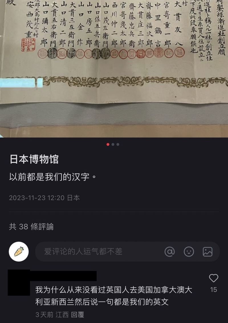 粉红网友逛日本人博物馆,看到书法大喊“都是我们的汉字”,被评论一句话驳倒,无地自容!