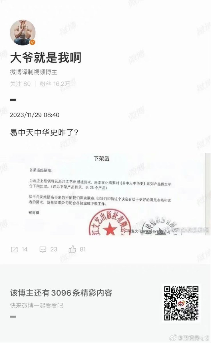 24套《易中天中华史》在墙内被全面下架。前两天看到这则消息时,国内电商平台还能正常搜到,目前搜索已不显示任何相关结果。