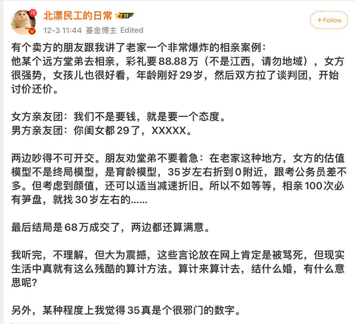 量化的相亲尤其是那句折旧减值到成交,恍惚回到会计课程,只是不是物而是“人”