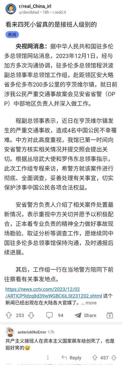 关于小留在加拿大出车祸这事,居然引发了中国领馆人员的强烈反应。之前看到知乎网友说,如果不幸去世的是你我这样的普通人,官方连屁都不会放一个。