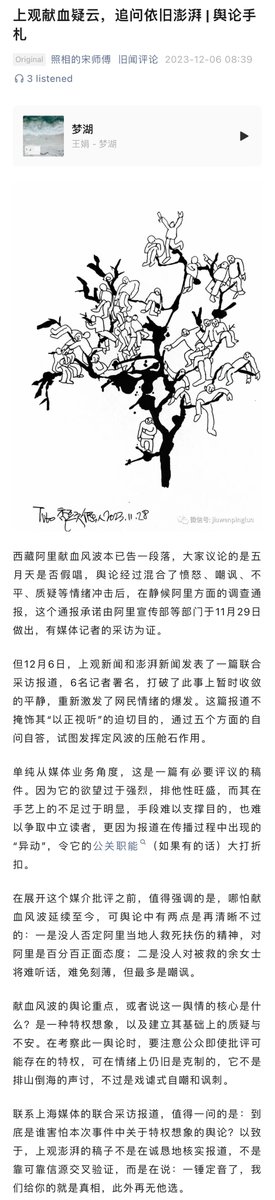 宋志标:上观献血疑云,追问依旧澎湃。谈澎湃辟谣文中的舆论手法。宋的这篇文章是相当牛逼的,但普通网友只能读的云里雾里,比较适合舆论研究者阅读。