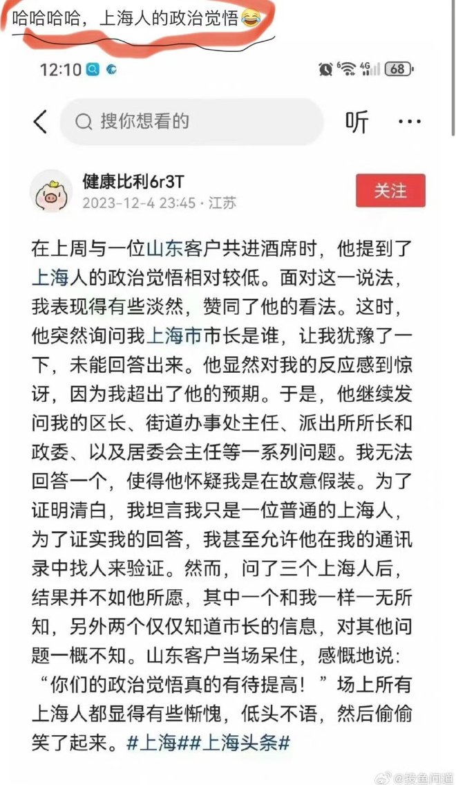 图里山东人觉得你不认识政府的人那万一他们来折腾你怎么办,而图里上海人觉得只要政府不折腾我就行了。前者是谄媚,后者是漠视。在我看来实际上图里两个人是正反两面,都不关心政治生活。而图里上海人的心态实际上就体现出现在我们大部分人的心态:只要你不折腾我,你们随便怎么瞎搞都可以。…