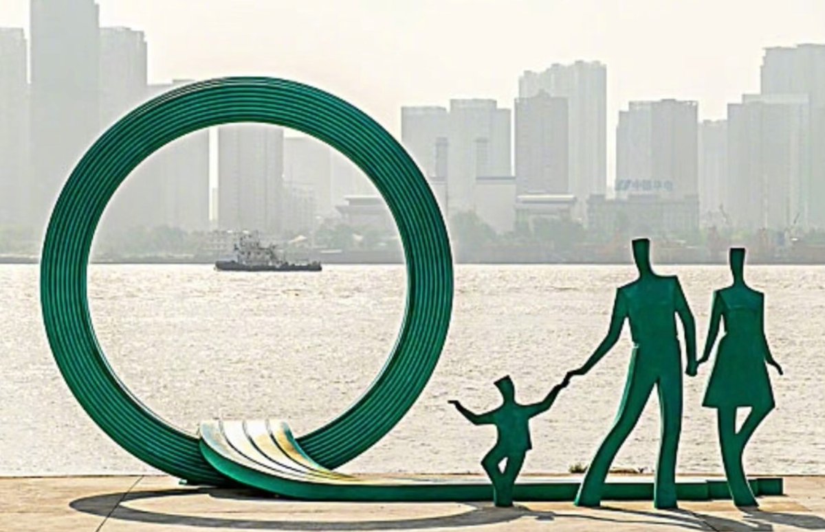 武汉汉口江滩公园的“一家三口”雕塑,现已发展成“一家五口”。
