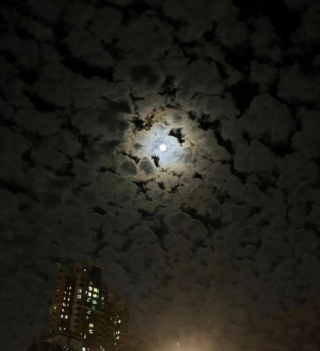 今晚的月亮有點像從裂開的冰里浮了出來。