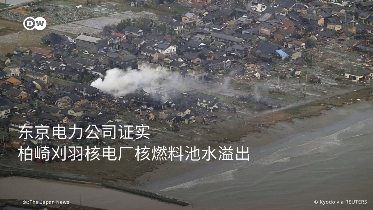 #东京电力 控股公司周一(1月2日)宣布,由于前一天的强烈地震,位于 #日本 新泻县的柏崎刈羽 #核电厂 7号和2号反应炉,其顶层燃料池的水发生溢流。不过经确认,核电厂建筑物没有损坏或泄漏。