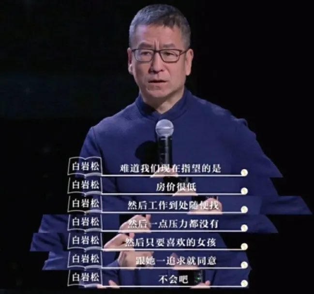白岩松的这个反问回答,是要解决躺平族的几个棘手问题,房价太高,996太累,压力大,谈恋爱结婚昂贵。但他的回答,从根本上否定了这些问题的真实存在性,反而劝导年轻人在接受现实的基础上,从承认困难开始,再出发再努力。