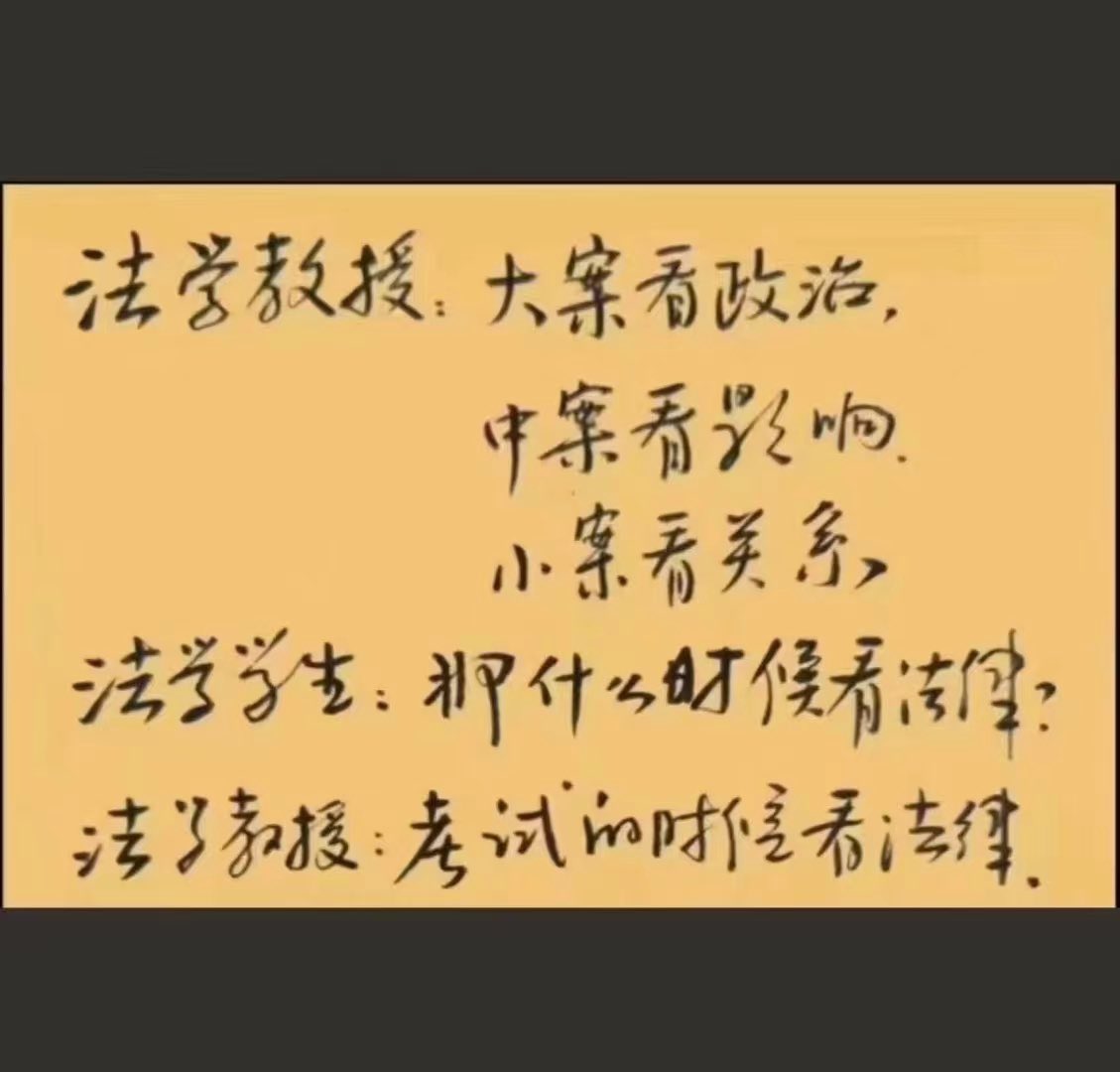 今日酷评【师生对话】法学教授:大案看政治,中案看影响小案看关系。法学学生:那什么时候看法律?法学教授:考试的时候看法律。