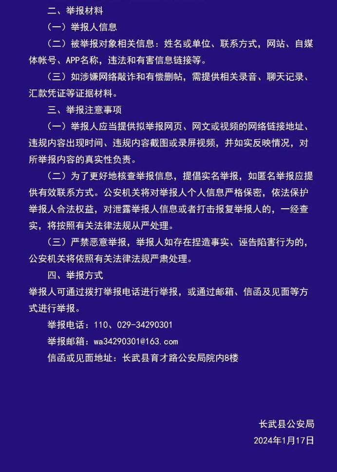 1月17日,陕西长武县公安局发布了一则向社会征集网络谣言线索的通告