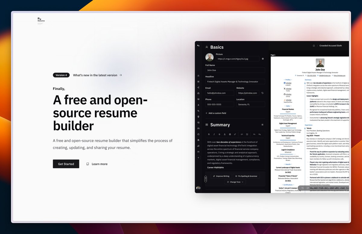 #工程师工具 发现一个做得很精致的免费开源简历生成器,可以把很好通过表单填写生成一份精致的简历,包括编辑、以及共享给其他人的查看,很潮流,会比纯粹Word简历方便不少,有需要的小伙伴可以试试,假如你是前端或Java正在找工作,也可以用这个工具生成简历以后发给我~🤖