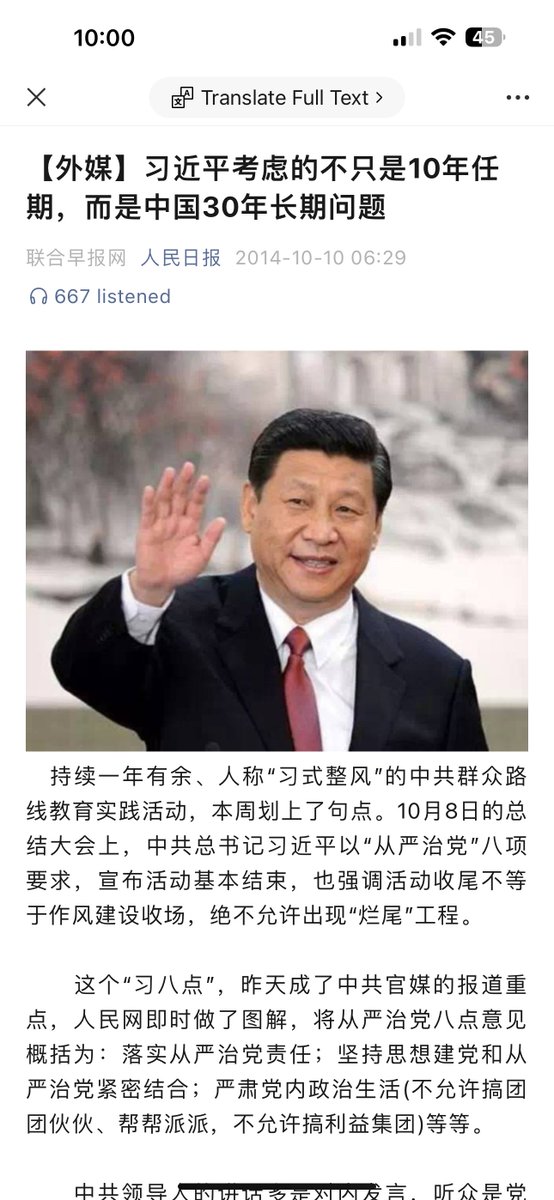 2014年老新闻:圣上考虑的不是10年任期,而是30年长期问题。