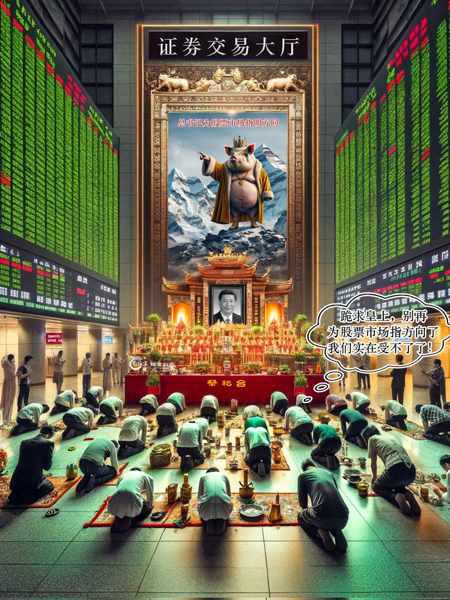 中国证券交易所,本来就是收割韭菜的收割机,包子帝上台后更是火上浇油,用牠那“指哪儿哪儿烂尾,摸哪儿哪儿烧毁”的手为中国股票市场指明了方向,股市由“徘徊战”转向“保卫战”:3000点保卫战,2900点保卫战,2800点保卫战……股民们终究还是没能保卫住口袋里那有限的一点血汗钱!