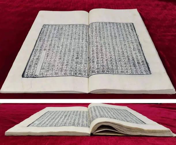 衣服和妆容都非常好看。但是拿的书有问题,第二张图可以清晰看到,这本书靠近书脊的地方是空白的,这是明代才开始流行的包背装或者线装书。宋代流行的蝴蝶装如图,空白的部分是靠近书口的。😉
