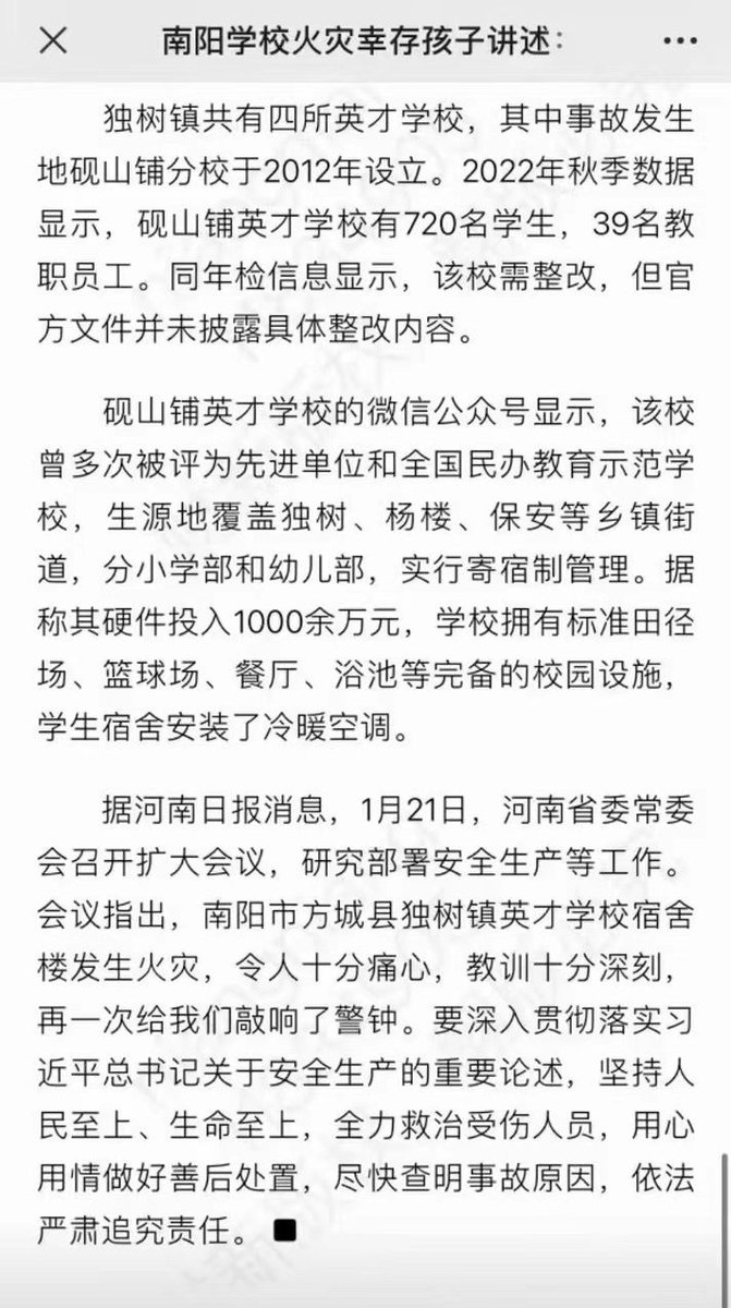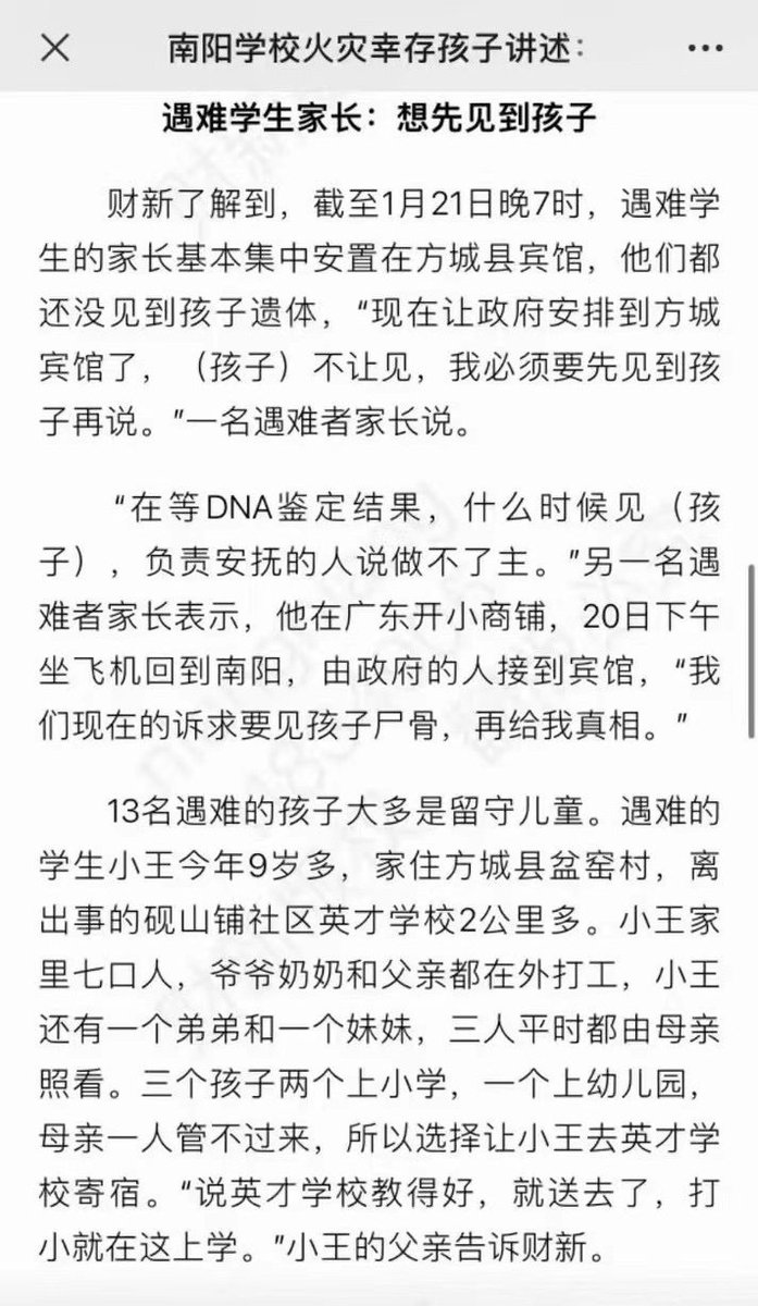 被删除的河南南阳火灾报道。这次又是财新网一手报道的。