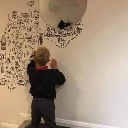 一个 9 岁小男孩因经常乱涂乱画而被学校处罚。一家餐馆知道后,聘请了这个孩子做餐馆墙壁的装饰工作。