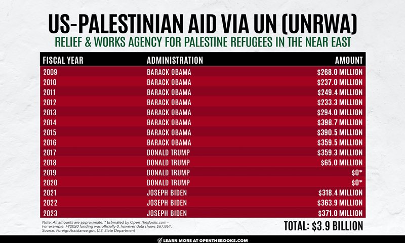 ——美国自奥巴马时代开始已经向UNRWA近40亿美元(特朗普时代最少),真他妈会做冤大头!