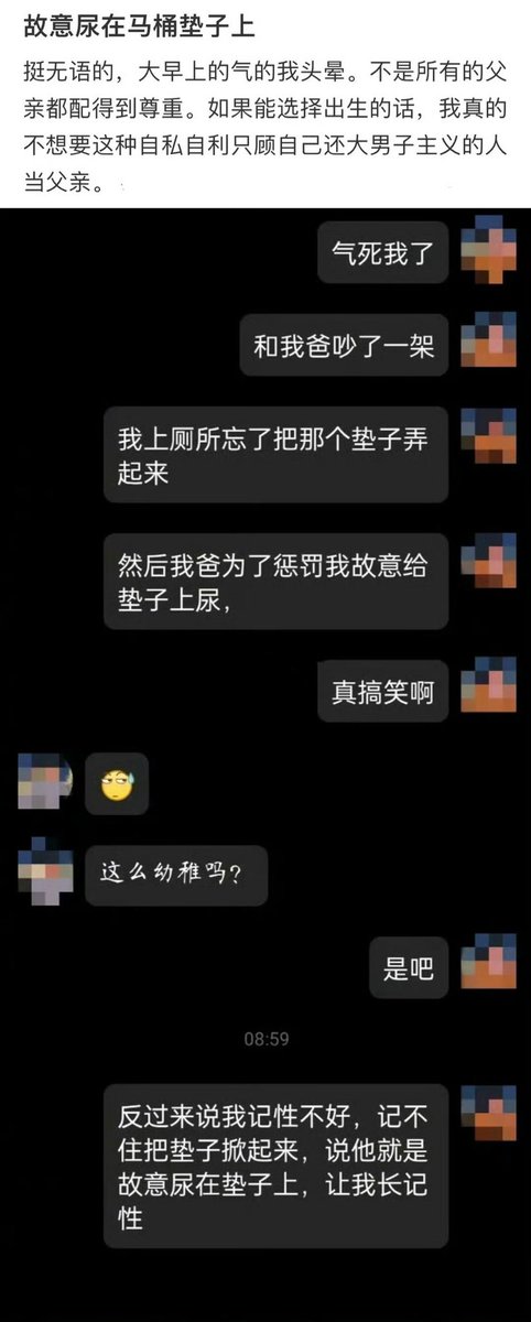 去年咱们刚讨论过男性坐着尿尿,并发现这在欧美并不罕见,还记得吧?结果,我,刚刚,看到了,祖国男性用故意尿在马桶圈上来惩罚女儿