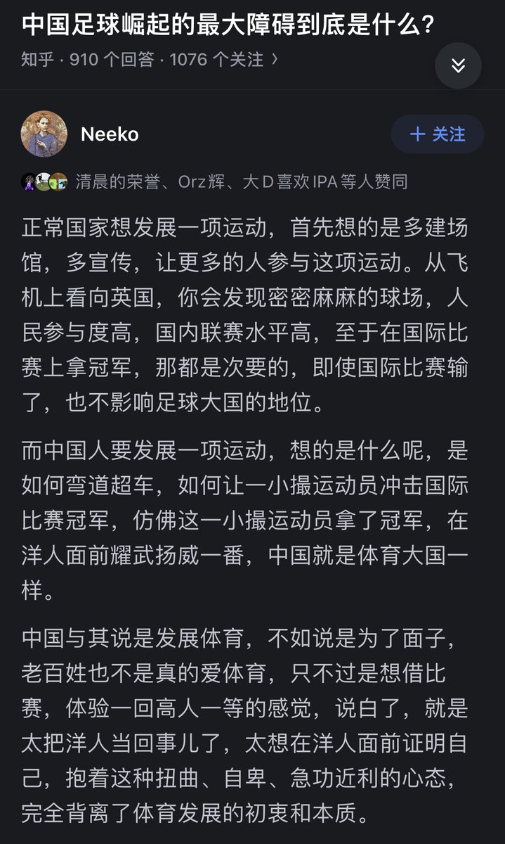 中国发展一项运动,要的往往是面子,做的事也大多是为了面子。