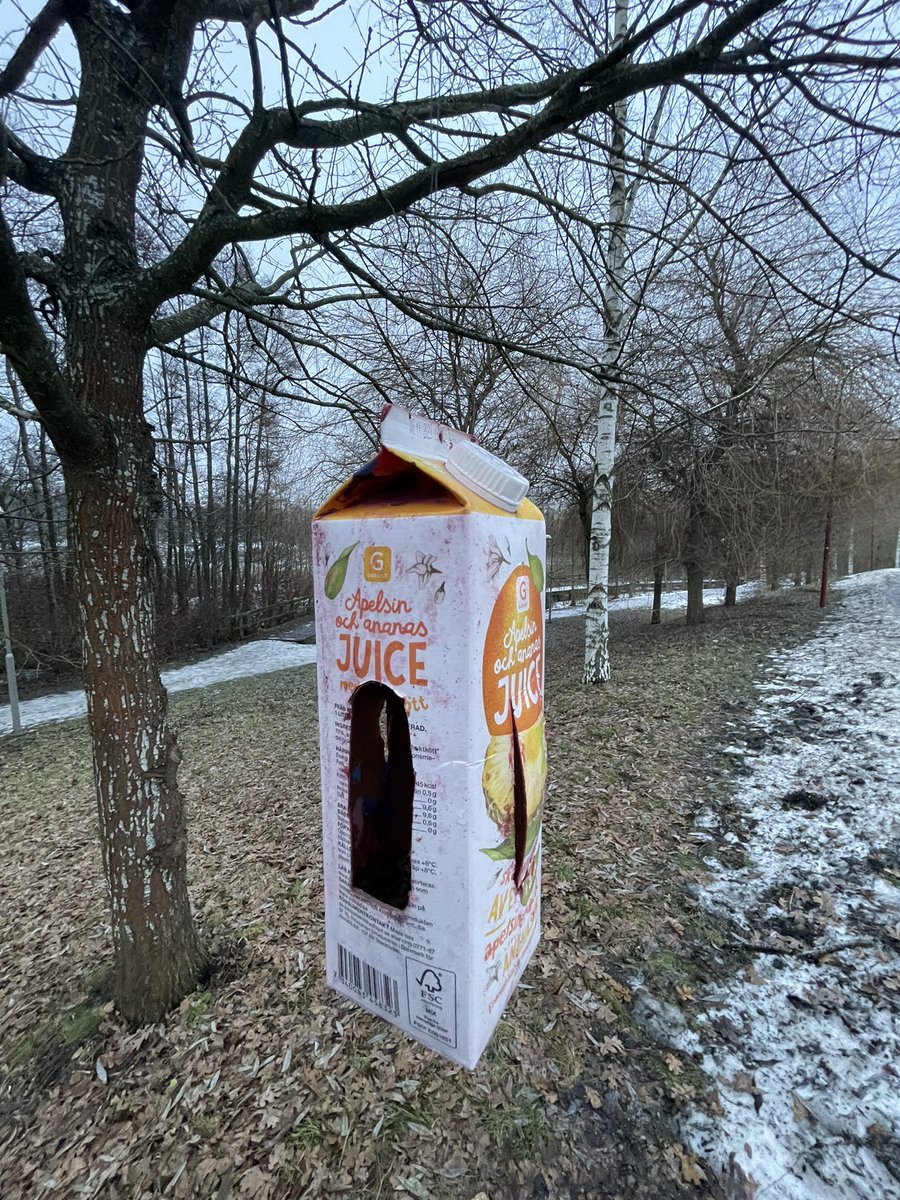 在路上看见了一个自制喂鸟器。好机智啊,我也要试试!