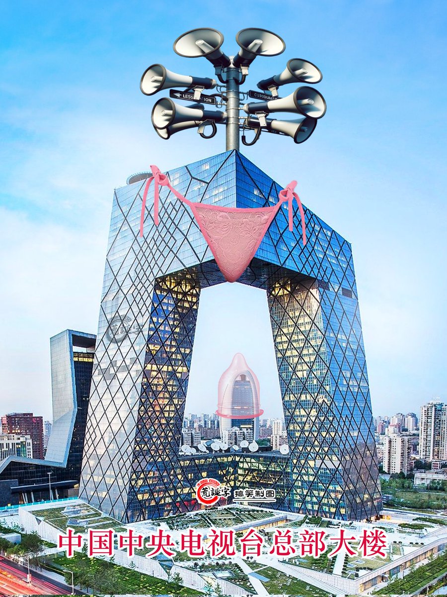 中国中央电视台,是中共的喉舌,是党的大喇叭! 匪党一贯的作风就是生殖器治国,在光屁股皇帝的带领下,更是肆无忌惮,光腚露阴,毫无羞耻之心,整天鼓吹自己伟光正,专门造谣抹黑文明世界,忽悠和欺骗十四亿中国人民! 央屎大楼被民间戏称“大裤衩”,本人看了半天也没看到哪里穿了大裤衩?完全是露裆啊,后面还有露阴,实在不忍直视! 我学雷锋做好事,给它们该穿的穿上,该戴的戴上吧: