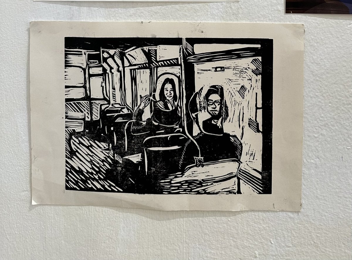 前兩天不經意間翻到拍下的這張版畫,記得是臨摹自一張照片,拍下了用面具紀念雪餅的公交乘客。被這樣暗流中流動著的記憶方式打動了,像透過層層鏡片的反射才會看到的真實,脆弱卻不滅。