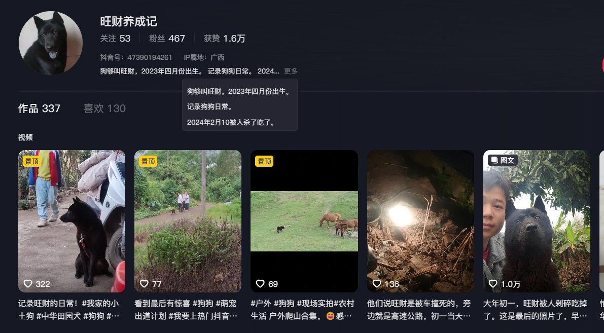 一位博主从去年7月份开始记录他养的一只小狗然后昨天被隔壁村的人杀了吃了.....