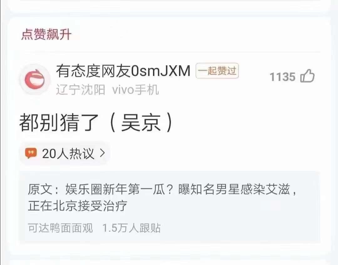 网传吴京感染艾滋👇莫非战狼原来是色狼🤔
