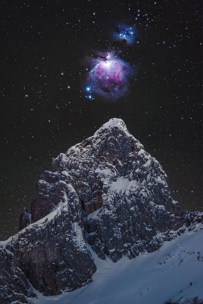 The Great Orion Nebula rises over the Swiss Mike Wong Alps.✨MIKE WONG PHOTOGRAPHY