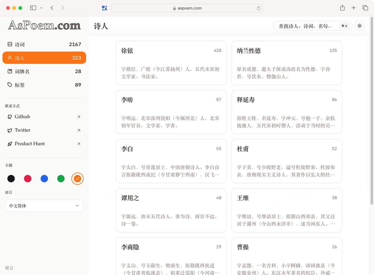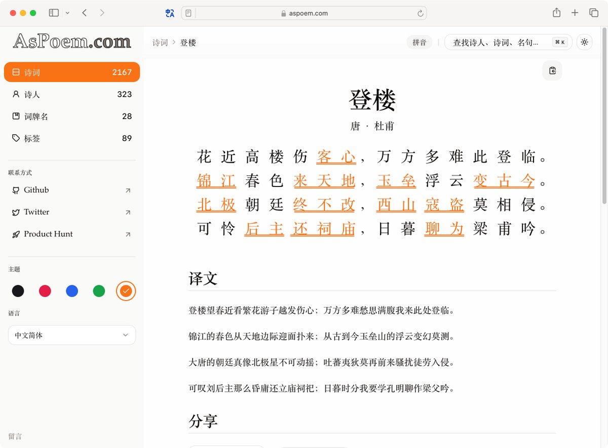 AsPoem | 现代化中国诗词学习网站,没有收费&广告烦扰,专注于UI和阅读体验的诗词平台。家有学生必备网站,值得收藏。