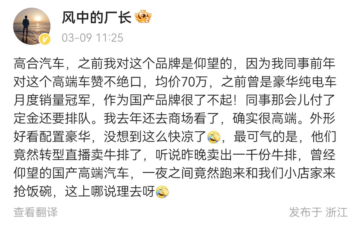 高合汽车转型卖牛排。