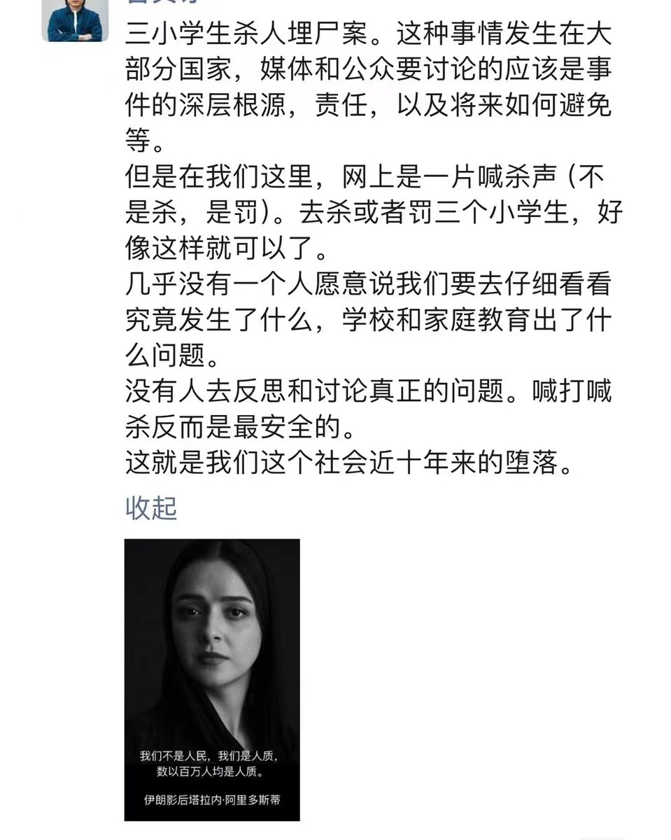 中国人总觉得杀人能解决问题,对揭露和解决社会深层问题没有兴趣。大多数人甚至相信全国的中小学生会关注一个只能热一个星期的案子的判决结果,然后决定自己要不要霸凌别人。