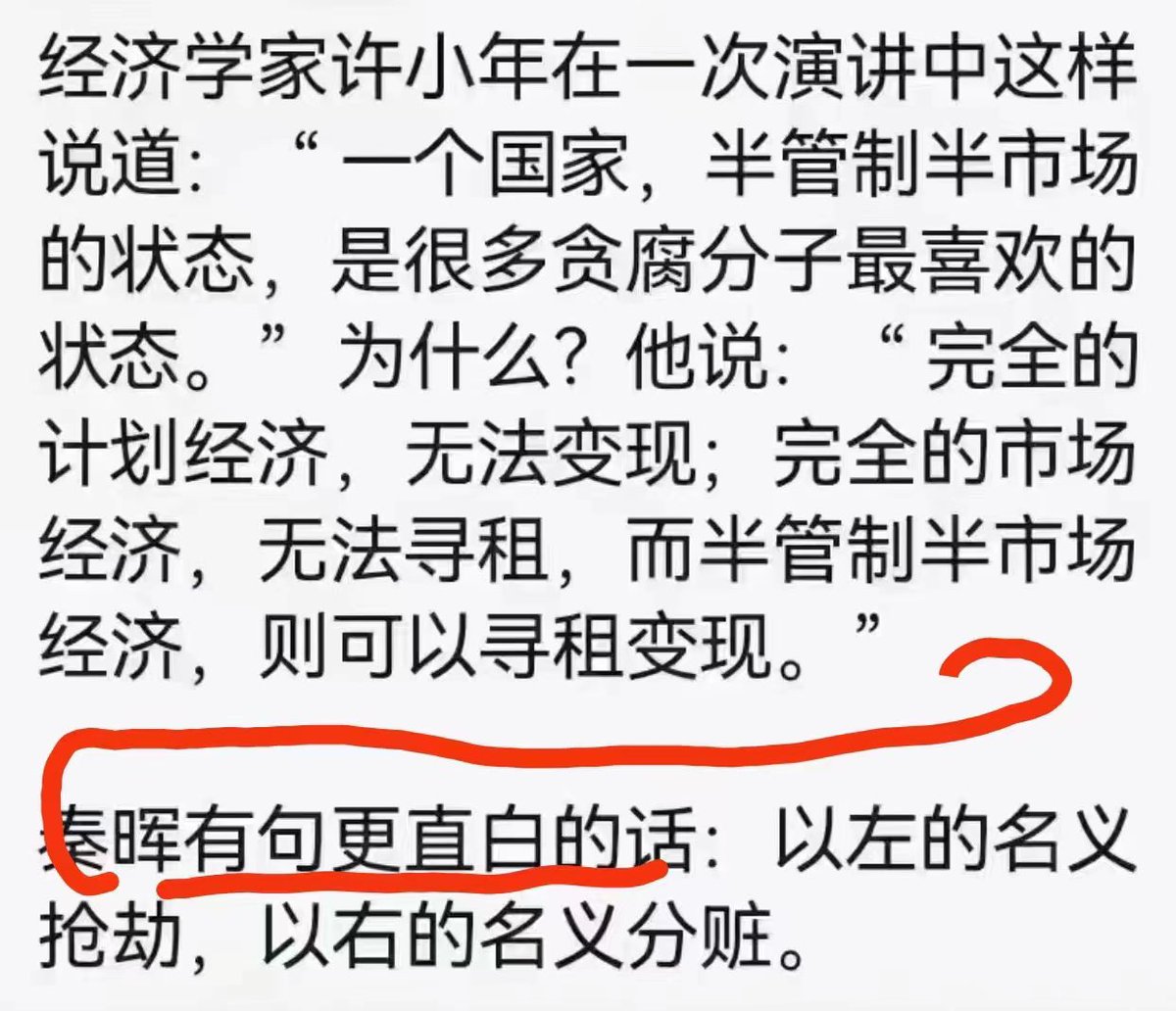 今日酷评【一个国家是靠腐败机制办事:请问如何能反腐败】经济学家许小年在一次演讲中说道:一个国家半管制半市场的状态,是许多腐败分子最喜欢的状态。计划经济,无法变现;完全的市场经济,无法寻租,而半管制半市场经济,则可以寻租变现。奉晖有句更直白的话:以左的名义抢劫,以右的名义分赃。