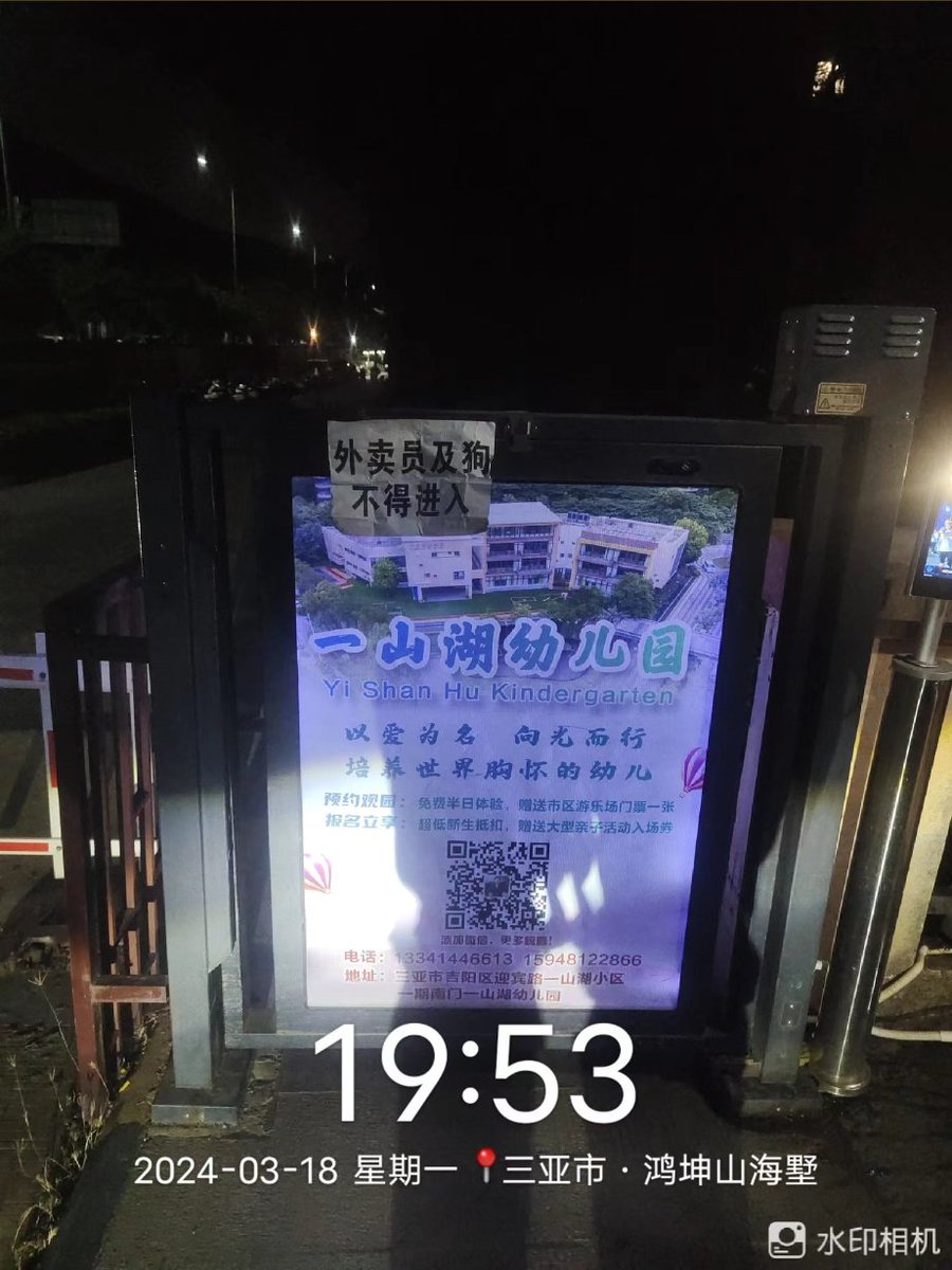 3月18日,海南三亚一小区张贴告示:外卖员与狗不得进入。