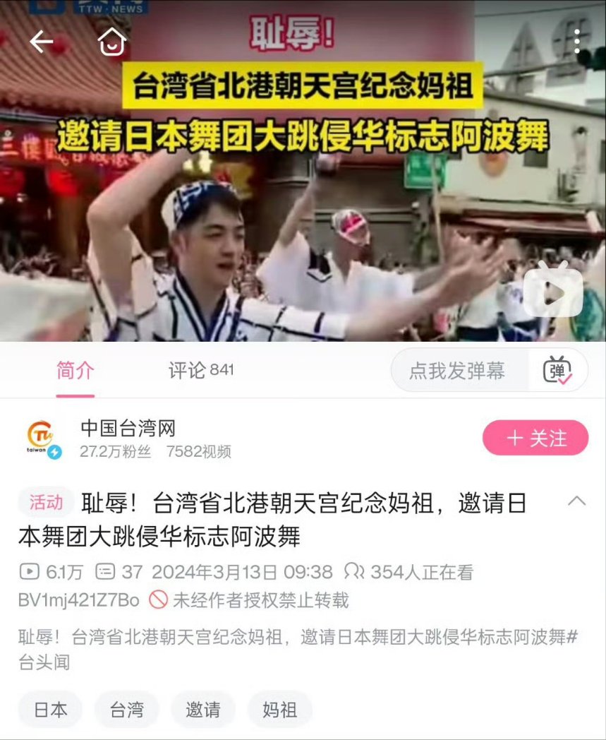 阿波舞是日本的传统舞蹈,早就在几百年前就诞生了,况且在二战期间被日本禁止。怎么就成“侵华标志”了?