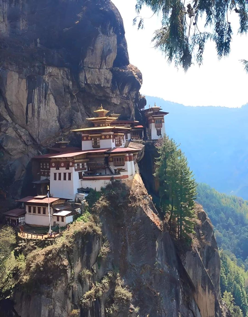 Monastery buildings consist of four main temples and residential shelters ideally designed by adapting to rock (granite) ledges, the caves and rocky terrain. Out of 8 caves, four are comparatively easy to access. Cave where Padmasmabhava first entered riding Tiger known as Tholu Phuk' and original cave where he resided and did meditation is known as 'Pel Phuk'. He directed spiritually enlightened monks to build monastery here. Monastery is so precariously perched that it is said: "it clings to side of mountain like a gecko". Main cave is entered through a narrow passage.