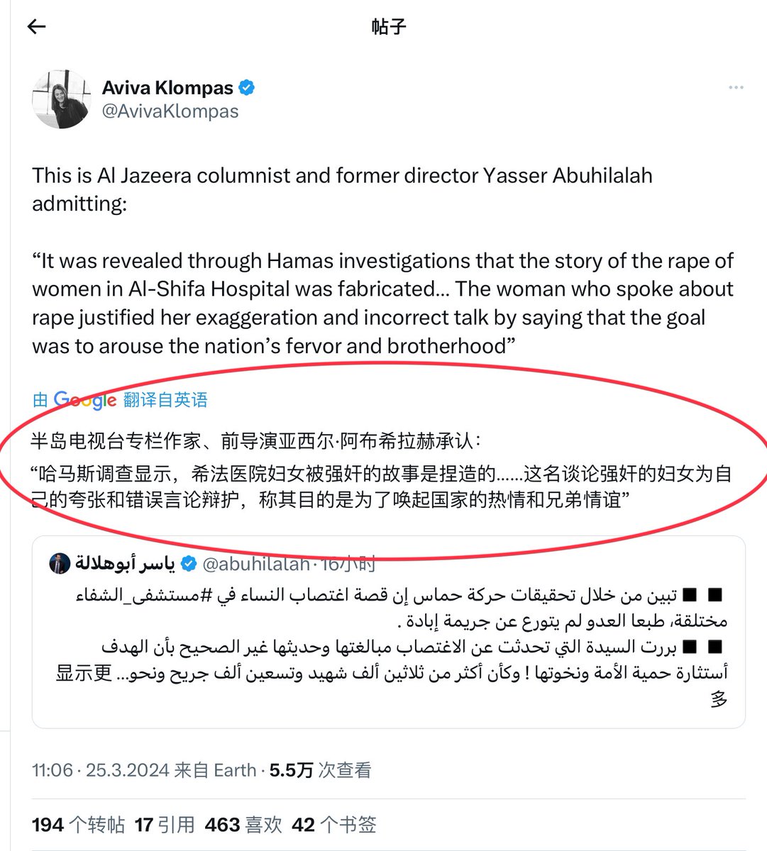 昨天半岛电视台报道了一条比新冠病毒传染还迅猛广泛的新闻:“IDF士兵强奸了一名怀孕五个月的巴勒斯坦妇女,并强迫她的家人观看”(这其实是哈马斯强奸的特征)记者很有名,被称为加沙北部仅存的少数记者之一。这里有个打假🧵然后哈马斯说半岛新闻是捏造的。半岛只好辟谣