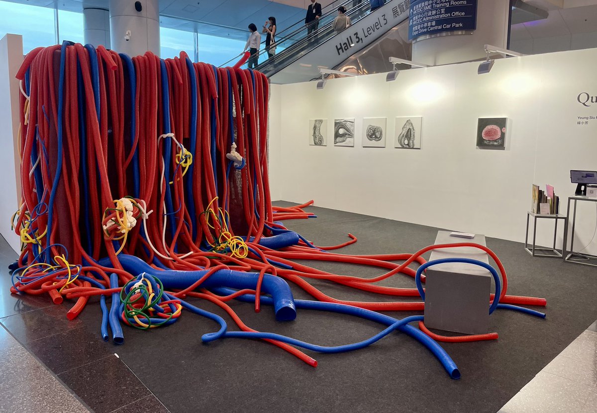 Art Basel 是個藝術品交易展,場外也有本地藝術家的作品,印象深刻的是這位香港年輕女藝術家的作品,她天生無臂,把自己最近患腫瘤的體驗變成了畫作和裝置,里面還有心跳和血流的聲音。天生障礙的人士一生面對只會更壞不會變好的殘酷現實,活下去都要有持續不斷的勇氣,對健全人士,何以為人是一種震撼