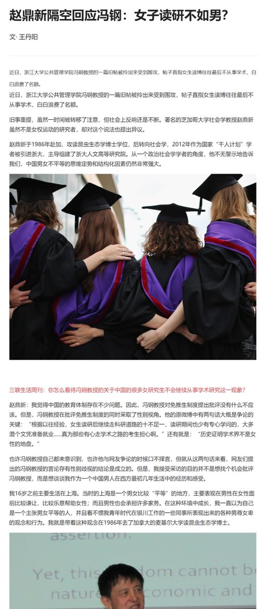学人scholar那篇《如何看待赵鼎新和浙大的矛盾?(深度解读)》,全文非常自洽,叙述详细流畅,议论颇有通达长者之风。但文中提到的“冯钢微博”事件我还有印象,网上也还能搜到公众视野里的事件经过;作者对这一节的裁剪、叙述和议论(见图1),使我感受到一种刀笔吏的丰采,乃至对整篇都产生狐疑(tbc