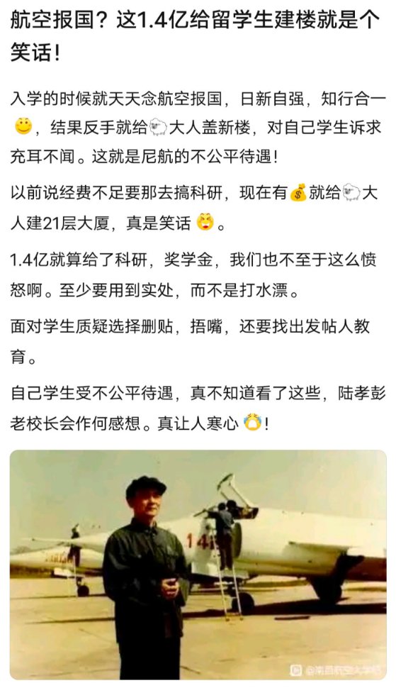 近日,南昌航空大学因准备斥资1.4亿为留学生修建新宿舍,引发广大学生不满,纷纷在贴吧及校内软件抗议吐槽。因反对声太大,导致校内软件遭停用。