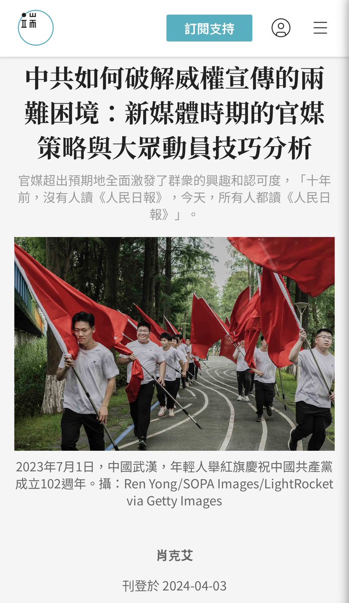 中共现在新媒体传播上是成功的,利用新媒体传播给民众释放的精神毒剂远比纸媒时代更灵活、更高效。之前没有人读的《人民日报》都变成了中国人的精神食粮,你还能指望这个国家往什么方向走下去?