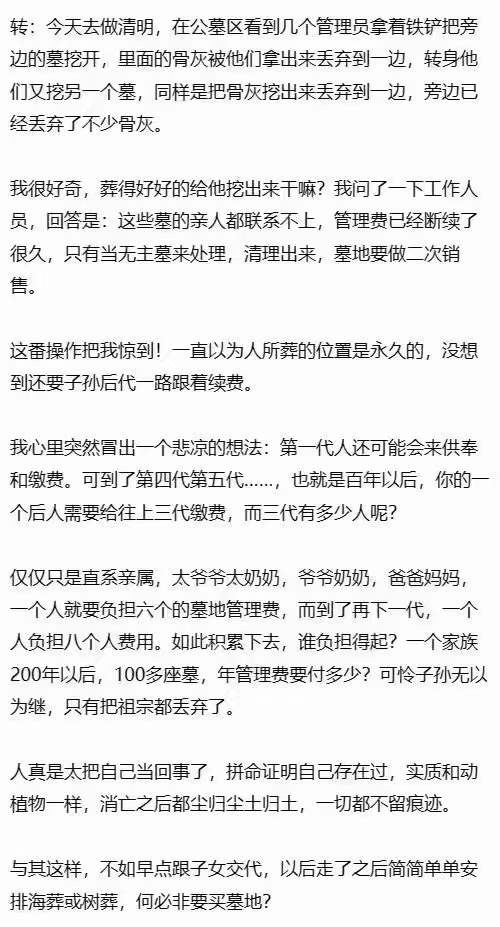 这的确是个问题。不知道其它国家的公墓是怎么做的。