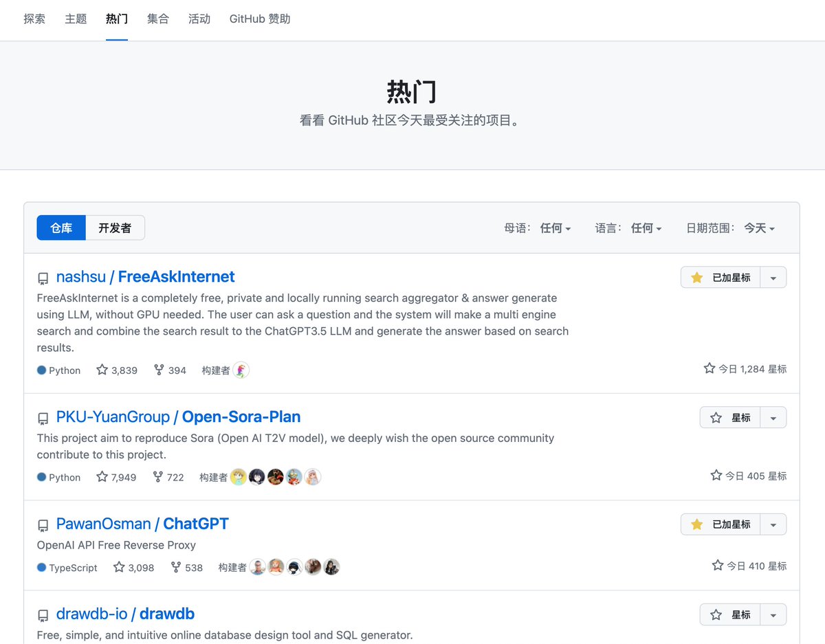FreeAskInternet 登顶了,NBNB。说实话,我在小白里面算是爱折腾的,如果我都折腾不成功,那<真小白>也别想成功🤣我常用 MacOS + OrbStack,执行三条命令就能完成该项目并直接使用。功能实用的同时又对小白非常友好,不登顶才怪了。