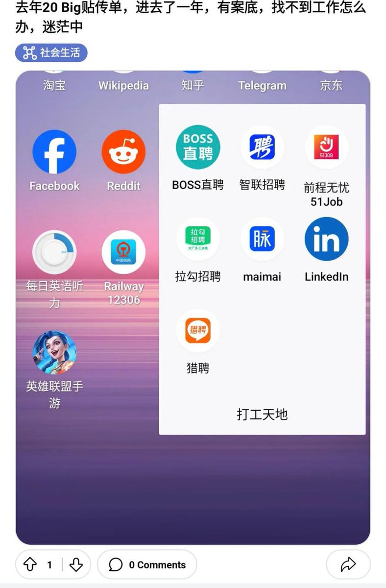 曾经参加白纸抗议被捕的网友表示自己找不到工作。属于是被中国人落井下石了。有网友建议:还是去申请政庇润吧。