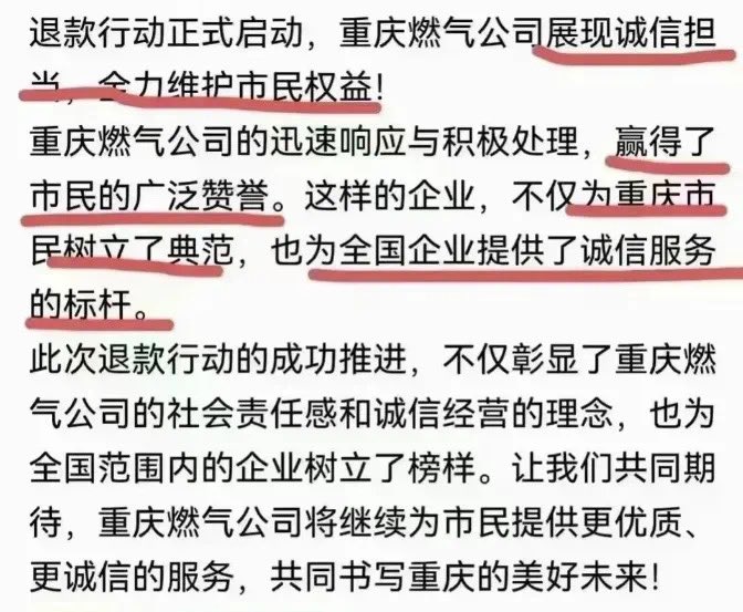 网文【这两个新闻放在一起,就有一股莫名的喜感】同样都是华润燃气,民偷气判十年,绝不手软;官偷气仅退款,再追究下去就不礼貌了。犯错的,永远都是那些遵守规则的人,似乎制定规则的人永远都不会犯错。哪怕错了,也不能认,更不会认,就算最后真的认了,不过是诚恳道歉、举一反三的事。