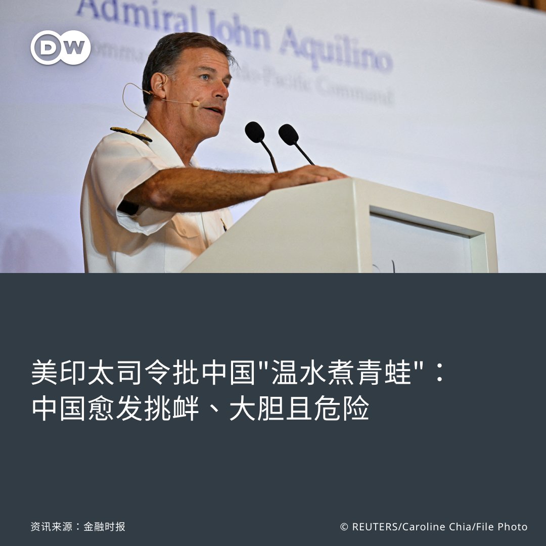 美国印太司令部司令 #阿奎利诺(John Aquilino)5月就要卸任,交棒前接受媒体访问时表示,过去3年来他看着中国藉由"温水煮青蛙"战略,逐步升高紧张 ,恐怕让人们低估危险,直到最终"大难临头"之际才发现为时已晚。