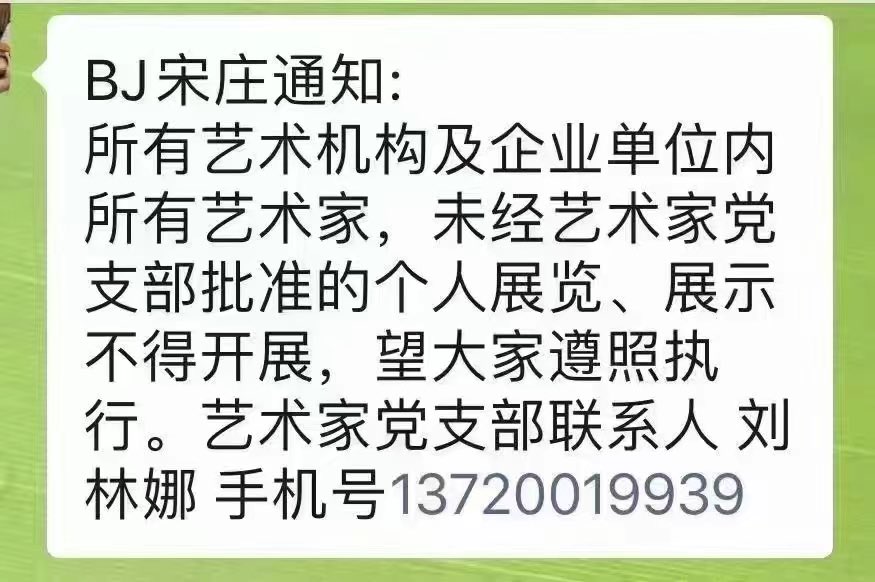 党是领导一切的。艺术家有独立思想很危险‼️转【BJ宋庄通知】所有艺术机构及企业单位内所有艺术家,未经艺术家党支部批准的个人展览、展示不得开展……