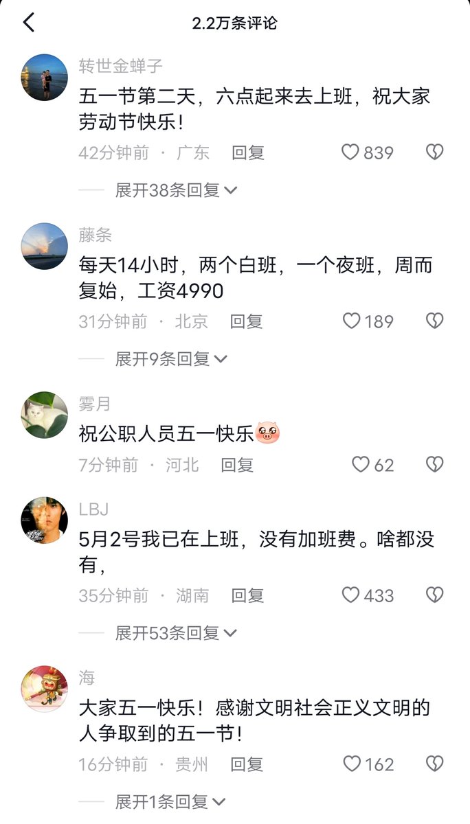 4月30日,美国劳工部负责国际事务的官员西娅·李(Thea Lee)在出席国会听证会时说,“出于强迫劳动的考虑”,跨国公司无法在该地负责任地运营,因此应离开新疆。对此,网友纷纷表示感同身受。看来,全国各地都或多或少存在“强迫劳动”的情况。
