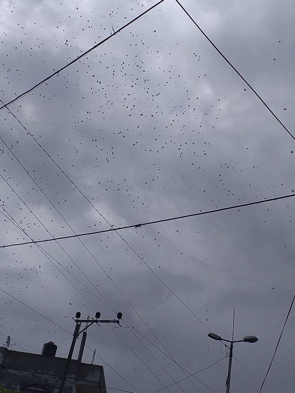 最新消息:以色列国防军的疏散传单落在拉法东部上空。要求平民 撤离