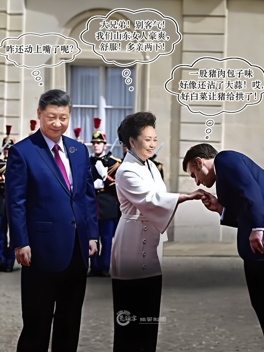 中共国家主席习近平,携彭丽媛委员访问法国,马克龙总统行法式浪漫亲吻礼: